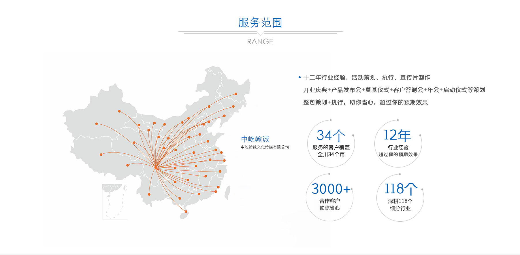 歷經(jīng)多年深耕,公司已形成 “公關(guān)活動(dòng)、展覽展示、品牌戰(zhàn)略服務(wù)、影視制作” 四大核心業(yè)務(wù)板塊。從創(chuàng)意策劃到落地執(zhí)行,從品牌塑造到視覺(jué)呈現(xiàn),從活動(dòng)運(yùn)營(yíng)到影像記錄,中屹翰誠(chéng)始終以專(zhuān)業(yè)視角與創(chuàng)新理念,滿足客戶多元化需求。憑借出色的服務(wù)品質(zhì)與專(zhuān)業(yè)能力,公司在市場(chǎng)中穩(wěn)步前行,服務(wù)版圖已拓展至政府、金融、媒體、演藝、建筑等 118 個(gè)細(xì)分行業(yè),與超 3000 家客戶建立深度合作關(guān)系,以實(shí)力贏得廣泛認(rèn)可與信賴。